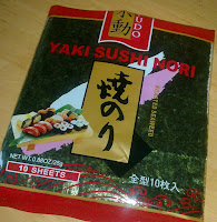 Вначале циновку покрываем пленкой.Затем кладем лист нори.